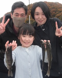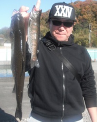 | 桜鱒♂x2/♀x1 エサ釣り |