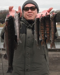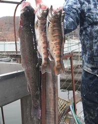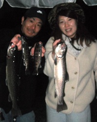 | 8時間料金 | 40㎝未満の虹鱒・桜鱒・山女:12尾 又は40㎝以上の魚種:1尾+40㎝未満5尾 又は40㎝以上の魚種:2尾 |