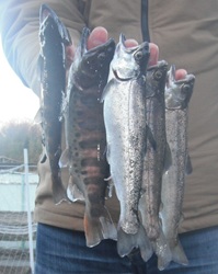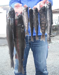 | 8時間料金 | 40㎝未満の虹鱒・桜鱒・山女:12尾 又は40㎝以上の魚種:1尾+40㎝未満5尾 又は40㎝以上の魚種:2尾 |