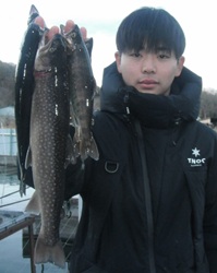 桜鱒x2/2 三倍体虹鱒x1/2リリースx1 ベリズ0.7/アキュ0.9g/クランク |